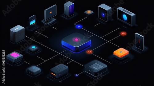 Isometric Illustration of a Smart Home Network with Connected Devices