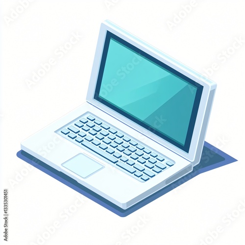 Isometric Illustration of Isolated Laptop Computer in Flat Design Style on White Background