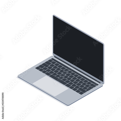 Isometric Laptop Vector Drawing, Blank Black Display Device Illustration, Digital Tech Mockup