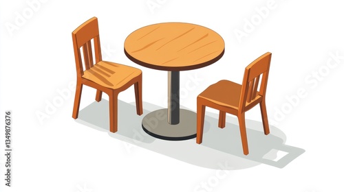 Isometric Round Table and Two Chairs