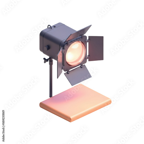 Isometric Spotlight with Warm Glow on Square Base for Stage Lighting and Studio Setup in Transparent Background
