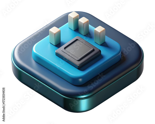 Isometric technology concept with semiconductor chip and circuit components futuristic design 3d illustration isolated on transparent background