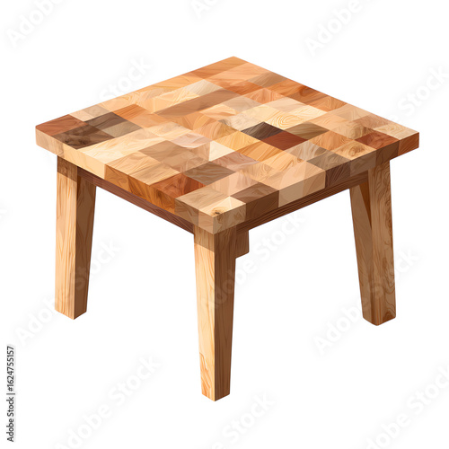Isometric vector art wooden table with light grain, isolated on the transparent background
