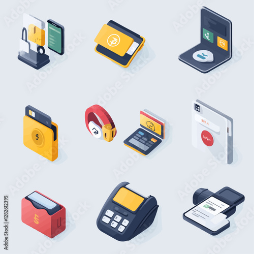 Isometric Vector Illustration of E-commerce Payment Devices and Technology