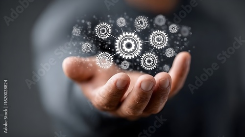 IT Consulting. Businessman holds digital consulting network connecting icon representing IT solutions, focusing on innovation, strategy, optimization, growth, and technology-driven success