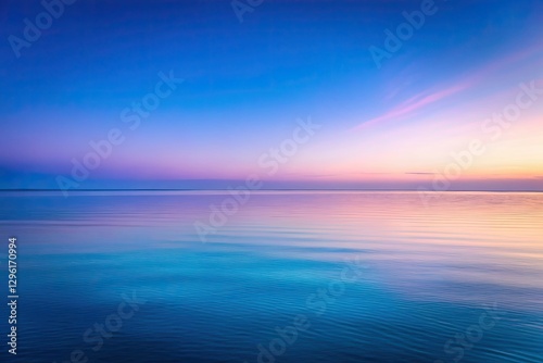 Italian coastline's L'ora Blu: minimalist seascape, twilight's serene blue hour, calm waters, simple beauty.