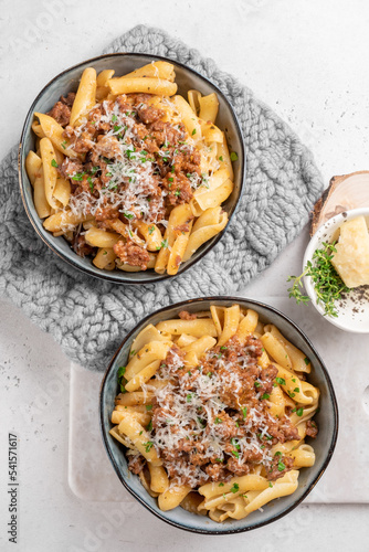 Italian pasta bolognese. Pasta with meat and tomato sauce