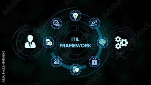Itil framework concept depicted with icons illustrating key it service management aspects