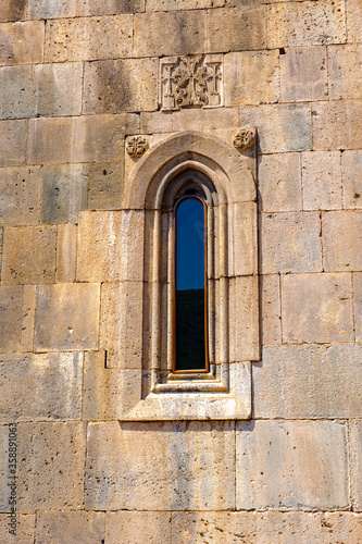 It's Window of the Monastery of Geghard, unique architectural construction in the Kotayk province of Armenia. UNESCO World Heritage