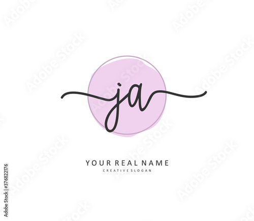J A JA Initial letter handwriting and signature logo. A concept handwriting initial logo with template element.