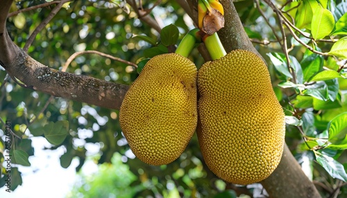 Jackfruit hanging on jackfruit tree