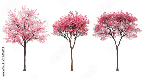 Japanese Cherry Trees Blossoming in Vibrant Pink Colors Generative AI