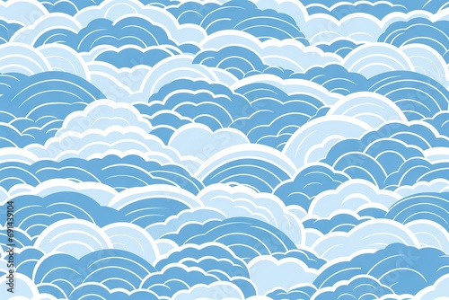 Japanese curl wave line pattern. Blue and white water wave, nautical sea tides. Abstract ocean waves background. Traditional oriental style