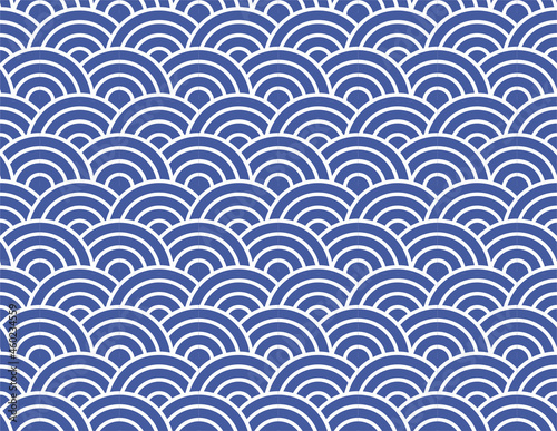 Japanese pattern blue stripes on white background, Wave pattern Japanese retro style, Cloth pattern in blue curve line, Abstract wave pattern on white and blue color