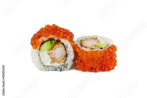 japanese sushi rolls with red caviar and shrimp