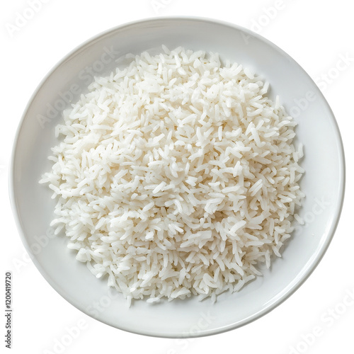 Jasmine rice served in a smooth transparent plate against a minimalist transparent background for culinary presentation, Jasmine rice in transparent plate on transparent background