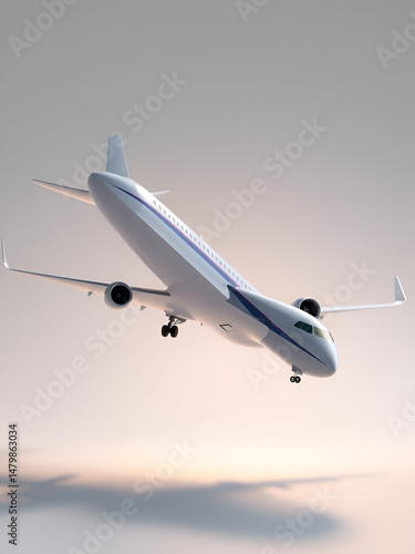 Jet Passenger's Commercial Airplane Model in Backlight. 3d Rendering