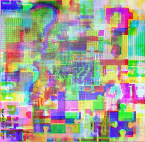 Jigsaw puzzles, interrogations and intricacies in mix glitch, background for science, logo, teenage games, basic project etc