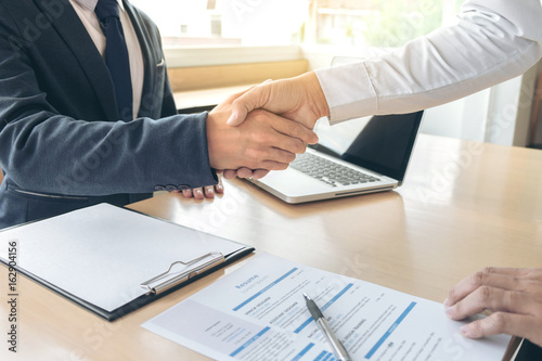Job applicant having interview, Welcome to team Business people handshake with executive manager to Sign Approval Into the company, business meeting, Greeting deal, congratulation