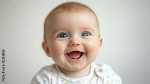 Joyful baby smiling portrait indoor lifestyle photography in a warm atmosphere