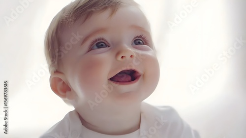 Joyful Baby Smiling with Bright Eyes in Soft Natural Light