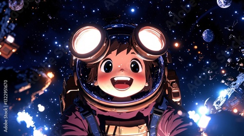Joyful Child Astronaut in Space AI Generated Cinematic High Resolution Image