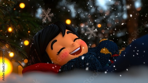 Joyful Girl in Winter Wonderland 3D Cartoon Snow Christmas Festive