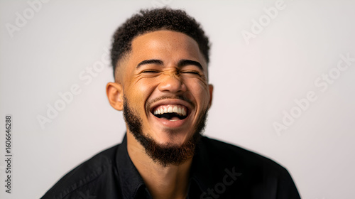 Joyful Man Laughing Out Loud, Showing Teeth, Against White Background