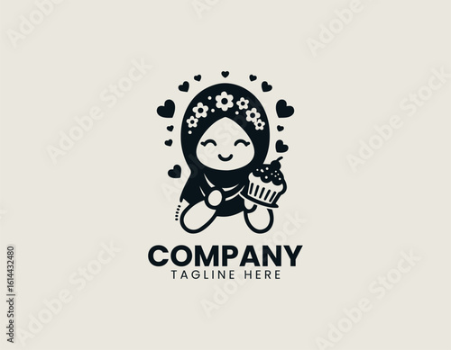 Joyful Muslim girl in hijab excitedly offering a slice of cake and a cupcake. Sweet celebration concept