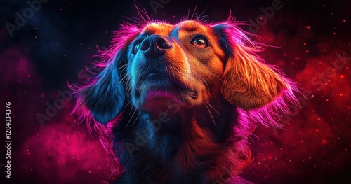 Joyful Singing Dog on Stage with Vibrant Lights in Digital Art Style