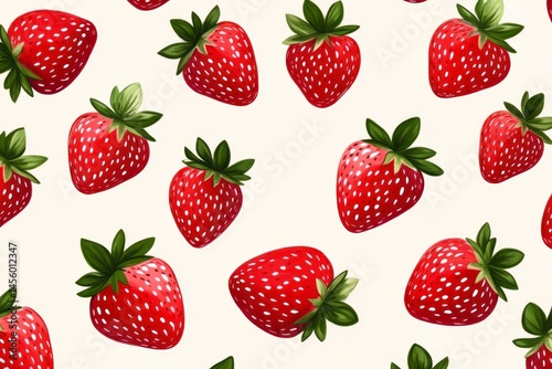 Joyful strawberries dance on canvas, evoking Strawberry Festival delights, summer picnic nostalgia, and vibrant printed fabric patterns