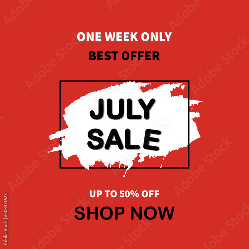 July sale text. Sale offer price sign. Brush vector banner. Discount text. Vector illustration for post, social media.