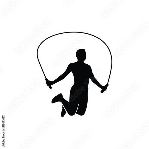 Jump Rope Vector Icon Clean Black Silhouette on White for Gym Use.