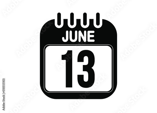 June 13. Day 13 of June. Black and white calendar vector. Template for the days of june.
