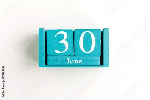 June 30. Blue cube calendar with month date isolated on white background.