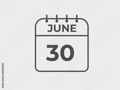 June 30 calendar reminder. 30 June daily calendar icon template. Calendar 30 June icon Design template. Vector illustration