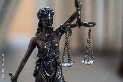 justice legal and jurisprudence concept. Law books on lawyer desk at law firm.