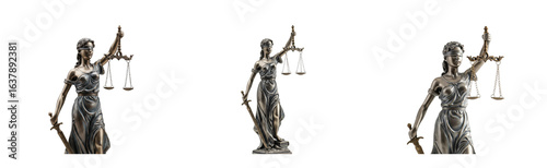 Justice symbolized by lady justice statue indoor studio high-quality artistic representation perspective. Cut out PNG set