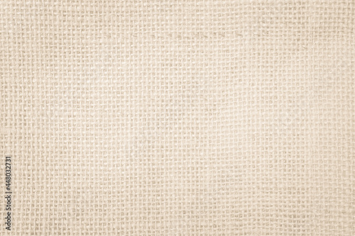 Jute hessian sackcloth canvas woven texture pattern background in light beige cream brown color blank empty