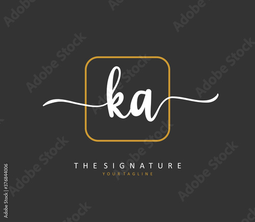 K A KA Initial letter handwriting and signature logo. A concept handwriting initial logo with template element.