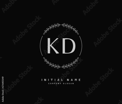 K D KD Beauty vector initial logo, handwriting logo of initial signature, wedding, fashion, jewerly, boutique, floral and botanical with creative template for any company or business.