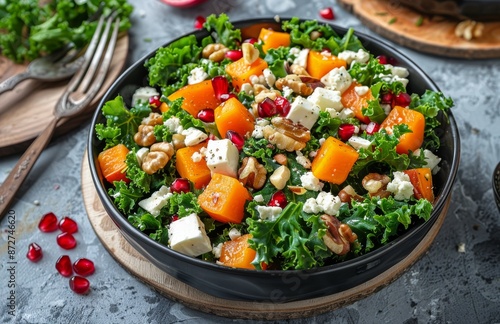 Kale Salad With Butternut Squash, Feta, and Pomegranate