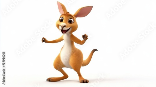 Kangaroo cartoon dancing, white background, lively and energetic character