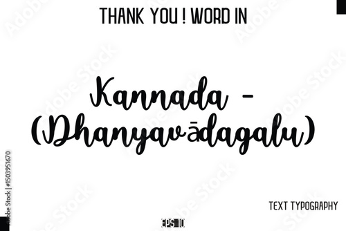 Kannada - (Dhanyavādagaḷu) - Thank You ! Word Elegant Cursive Text Typography Phrase