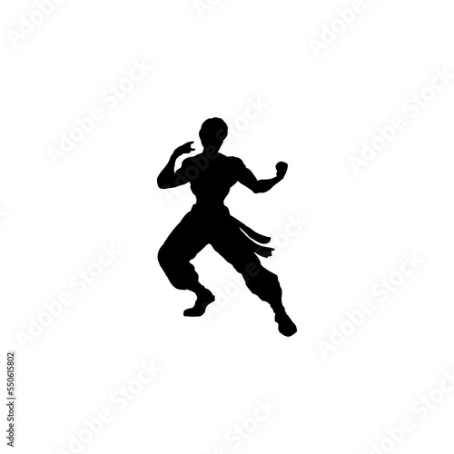 Karate player icon. Simple style karate lessons course poster background symbol. Karate brand logo design element. Karate player t-shirt printing. Vector for sticker.