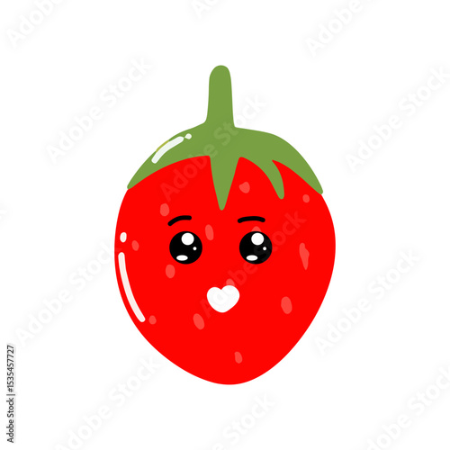 Kawaii strawberry cartoon character. Kawaii cartoon berries set. Funny fruit characters with smiling faces, hearts and sparkles. Cute and simple doodle style drawing, isolated vector clip art illustra