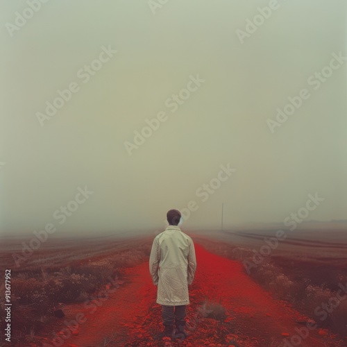 Keith , surreal style of conceptual photography,white red high place muted palette