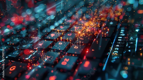 Keyboard keys intertwining with data streams, illustrating information flow.