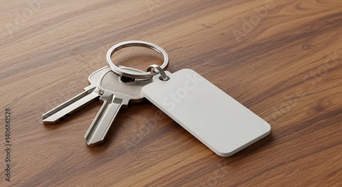 Keys with Blank Tag on Wood Surface Ready for Customization