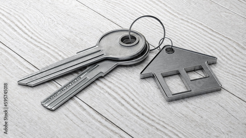 Keys with house shaped keychain. Real Estate Mortgage Property Management Rent Buy concept